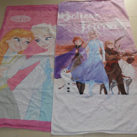 Håndklæde, Flot badehåndklæde med hætte samt Elsa og Anna fra Frost / Frozen. Perfekt til sommerens strandture eller i svømmehallen / badeland :)
