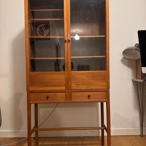 Eksklusivt vitrineskab i massivt thailandsk teaktræ – håndlavet kvalitet med autentisk sjæl, medbragt fra Thailand ved tilflytning for 20 år siden