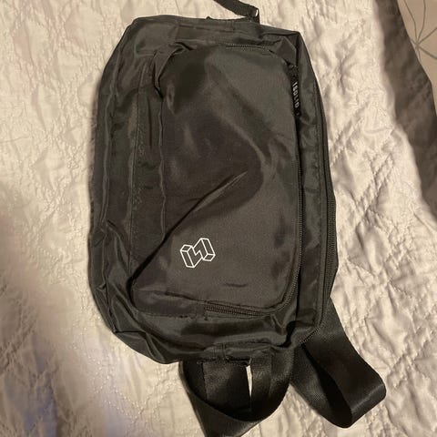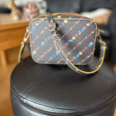 Sort stor taske med broderet St. Thomas, er pæn, velholdt og som ny, tasken er med lynlås, se mål på billeder.