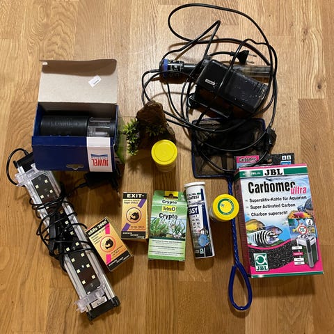 komplet akvariesæt med belysning / pumpe . Ikke været i brug . nypris 2700 kr