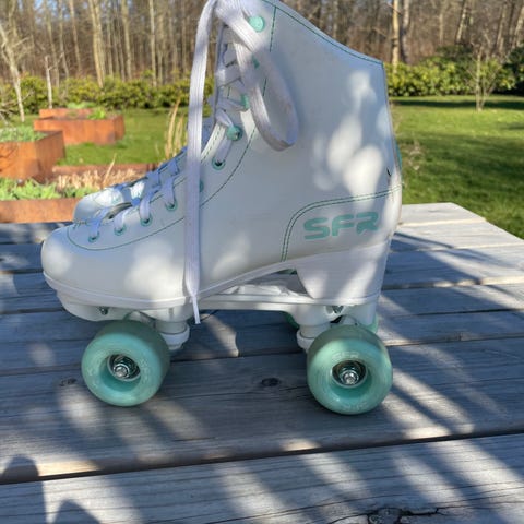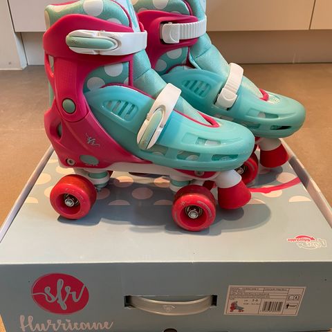 Side by side rulleskøjter, der er justerbare i størrelsen, så de passer fra skostørrelse 30 - 34