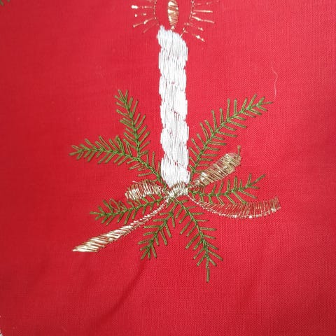 Retro Juleløber, Meget flot, hånd broderet juleløber. Er lidt mørkere rød, så ikke postkasse rød. Er som ny. Måler 34 cm x 88 cm