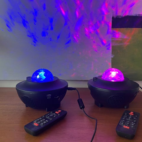 Starlight lampe med fjernbetjening. Lysprojektor med højtaler, som giver et stjernebillede lignende lys på loft eller/og væg. Brugt sparsomt