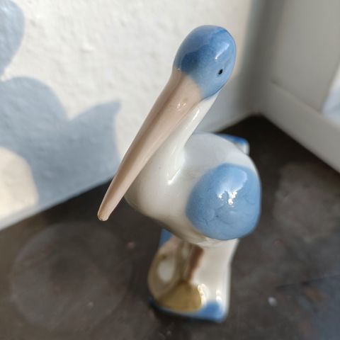 Sjov lille keramik pynteting - formentlig en vase, har meget lille hul i toppen, så bare til en enkelt lille blomst. Rød dekor. Signeret Mørk, ukendt for mig.