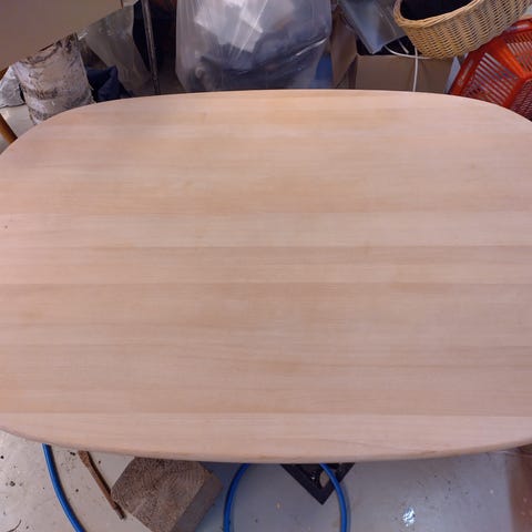 Sofabord i massiv bøg. Trænger til en pudsning og lakering.
