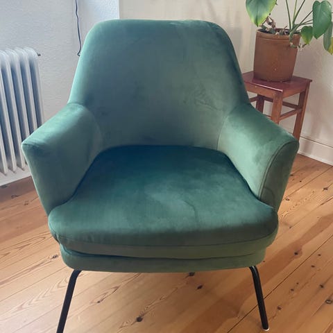 Grøn velour lænestol fra Ellos