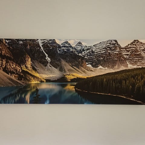 Lærredstryk, motiv: Landskab, b: 120cm h: 80cm, Smukt bjerglandskab i ramme til salg