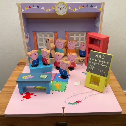 Gurli gris bedstefars båd, med Gurli gris i redningsvest og bedstefar gris.