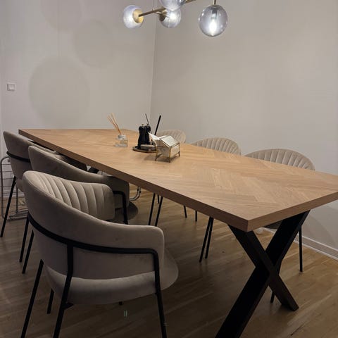 Bourdeux farvet velour spisebordstole, købt i Malmö, i butikken Mio.