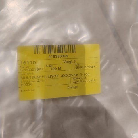 • Leder tværsnit: 0,25 mm²