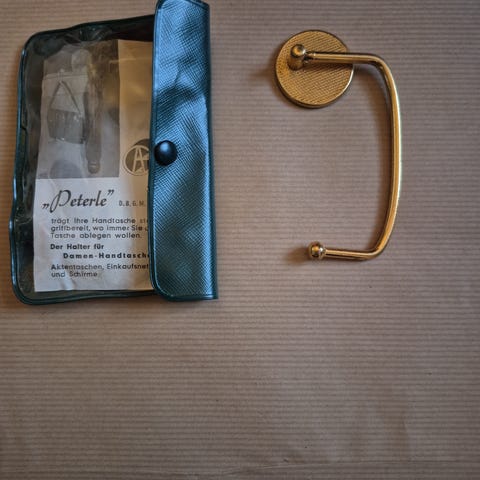 Flot Retro taske holder , til at hænge tasken på, ved bordet. Flot stand.