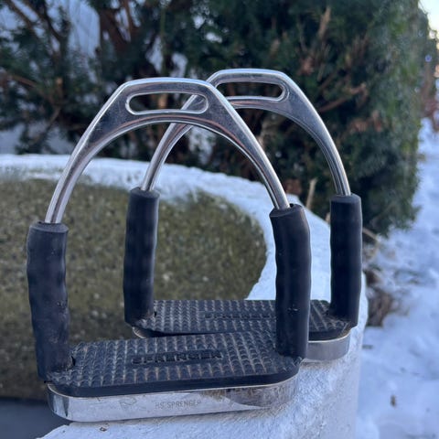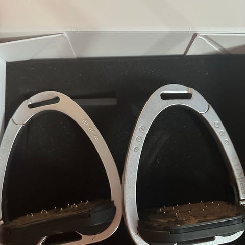 Super fede og meget sikre sikkerheds stigbøjler fra Equipe i farven bronze, som kun er brugt meget sparsomt.