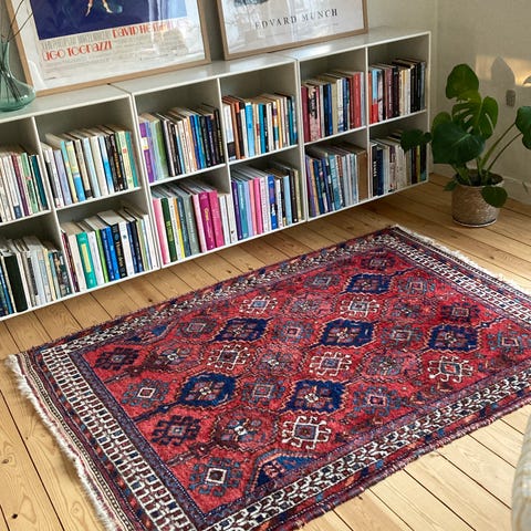 Flot tæppe, der kan passe ind farvemæssigt de fleste steder. Det er ikke brugt meget, da min søn flyttede lejlighed. Kan vaskes ved 30 grader.