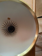 Pendel, Jo Hammerborg, Flot Medio pendel, designet af Jo Hammerborg for Fog og Mørup. Lampen har kun alderssvarende brugsspor, ø ca 33 cm, h ca 17 cm, uden bundrist, 950 kr. Kan medbringes kbh og Odense eller sendes #messingpendel #ufolampe #fogogmørup #johammerborg