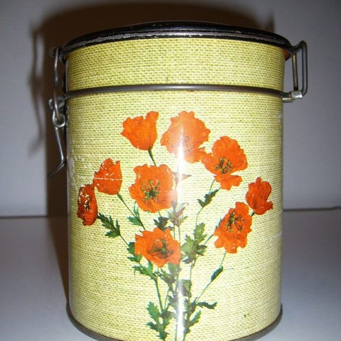 Kaffedåse, Kaffedåse af ældre dato. Fin stand, dog er der "noget" på låget. Ved ikke om det evt er et gammelt klistermærke.
