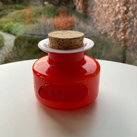 Blå kaffe krukke i serien palet fra Holmegaard. Tegnet af Michael Bang og produceret i perioden 1969-1976