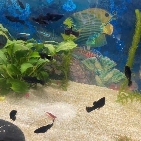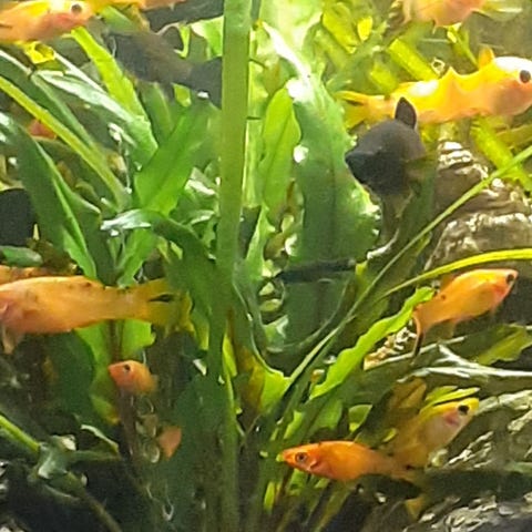 Orange Molly yngel, min søn har nogle der er henholdsvis 1 måned og 6 måneder gammel.