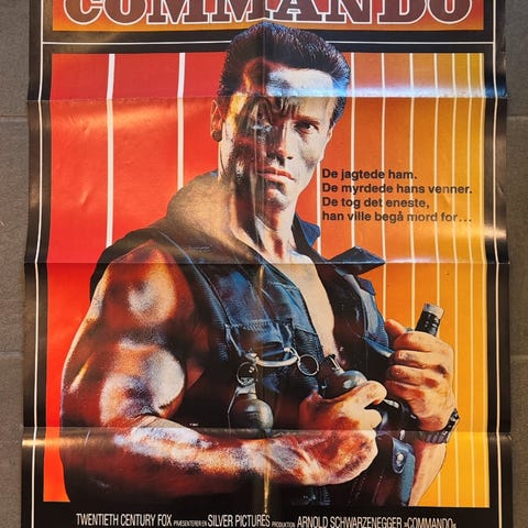 Original fransk filmplakat fra Arnold Schwarzenegger-filmen Commando (1985).