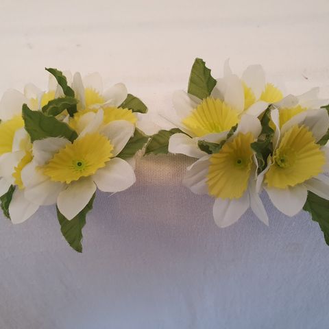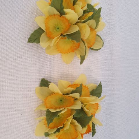 2 lysmanchetter, stofblomster. d. 10 cm.