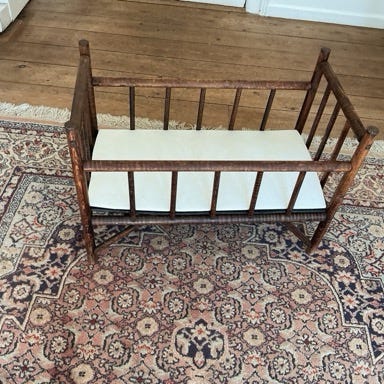 Smukkeste vintage barneseng fra Sverige med originale nyrensede sider og indtakte lameller i bund. Helt vidunderlig og klar til en ny baby.
