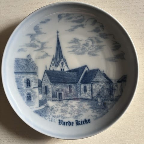 Kirkeplatte Viborg Domkirke, Bing og Grøndahl, Bing og Grøndahl - kirkeplatte Viborg Domkirke til minde om restaureringen i 1907, designet af Jens Peter Dahl Jensen. Dia. 24 cm. 1. sort.