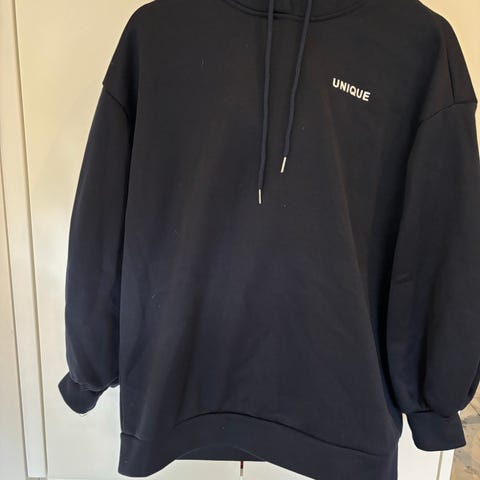 Flot sort og hvid hoodie fra Blue i en lækker blød bomuld. Den er str s-m, jeg er mest m og der sidder den også fint. Kun vasket og prøvet på én gang, så er helt som ny.