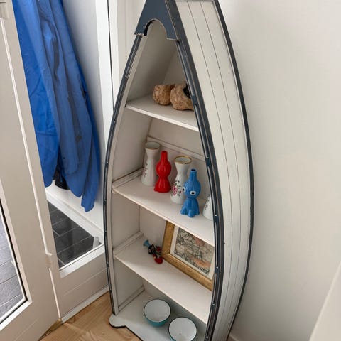 Reol, Båd trappe, 200 år gammel bådtrappe, renoveret og brugt som reol. Super charmerende.