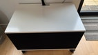 Flot TV møbel af mærket Unnu inkl hjul (højden uden hjul er 35 cm) og forplade i sort stof.
