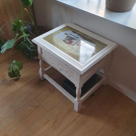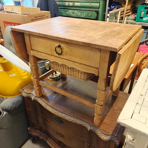 Lille fint afsyret sybord (vi tror, at det er egetræ).