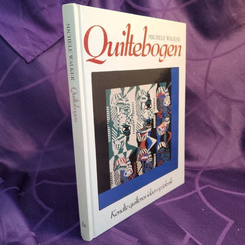 Qwiltebogen , Michele Walker , emne: håndarbejde, Kendte quilteres ideer og teknik. Bogen er fra Komma&Clausen forlag fra 1991 på 160 sider og måler 22 x 29 cm. Den er indbundet og brugt.