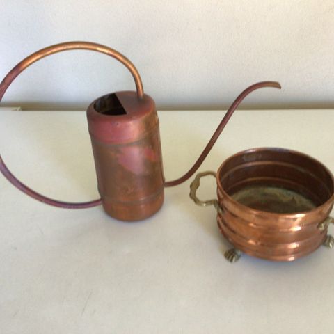Kobberkande, Flot gammel Kobberkande m/stativ , Si og Urtepotteskjuler.