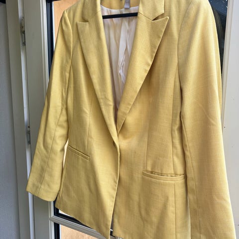 Jakken har - 2 lommer med klap - lukning med 2 stofovertrukne knapper - siddeslids bagtil og 3-knaps åbning ved håndled.