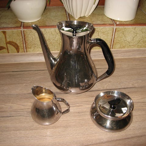 Super flot sæt med sukkerskål og mælke/flødekande i sølvplet. Produceret af Cohr / EPNS Denmark