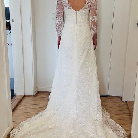 Brudekjolen er kun brugt en gang og tilpasset en højde på 170 cm + lidt hæle.