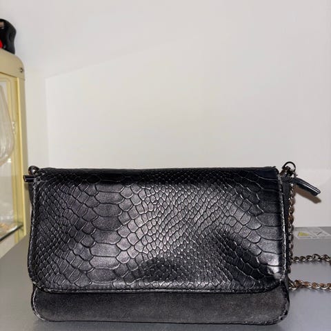Skuldertaske, Gina Tricot, læder, Mærkevare. Gina Tricot. Sort smart lædertaske bredde 21 cm, højde 14 cm. lille smart taske til at gå i byen med eller bare til hverdag. Justerbar skulderrem samt alm. hank. God sikker lås på tasken. Gaven, jeg aldrig fik byttet. Helt ny. Aldrig brugt.