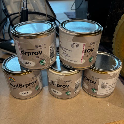 Hvis du står og mangler nogle farveprøver i rød, lyseblå , knækket hvid er der her en god mulighed. Sælges kun samlet.