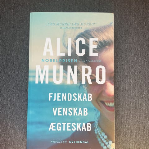 Fjendskab venskab, ægteskab. , Alice Munro , genre: noveller, Bogen er fra forlaget Gyldendal fra 2013 på 374 sider og måler 13 x 21 cm. Den er hæftet.
