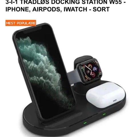 Oplad iPhone AirPods og Apple Watch samtidig. Kan foldes sammen. Uden kabel osv.