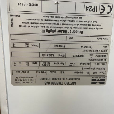 Metrotherm termostat til kombi vandvarmer kan anv 30-300 liter beholder vvs 345297442