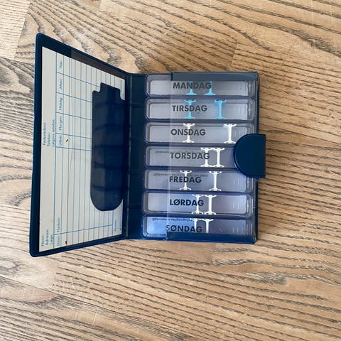 Andet, Pille æske, Sød lille metal æske til opbevaring af f.eks. medicin . Æsken har en plastisk indsats der nemt kan tages ud og rengøre.