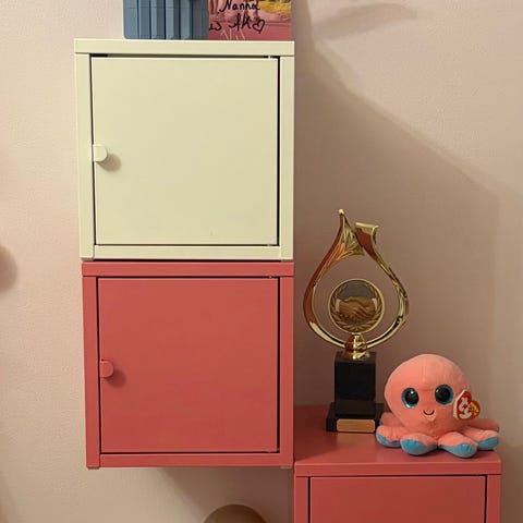 To hvide højglanslåger fra ikea BESTÅ med beslag. Mål 64*64 cm. Fejler ingenting. Nypris 330 kr stk.
