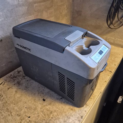 12/24 wolts køleskab velegnet til autocamper/bus. Den er med kompressor, så den kan holde tingene kold, selvom det er rigtig varmt udenfor.
