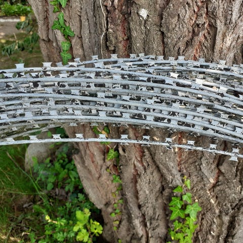 2 ruller galvaniseret pigtråd 200 meter og 2 ruller plastbelagt pigtråd 100 meter. Alle 4 ruller 150 kr