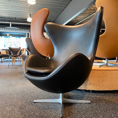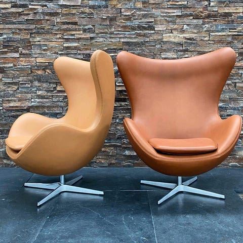 AJ Ægget inkl. vip og returdrej med skammel, produceret af Fritz Hansen. Ombetrukket i Walnut Elegance-læder af en professionel møbelpolstrer. Inkl. certifikater. Møblerne står i meget flot stand og er stort set ubrugte. Sælges grundet flytning.
