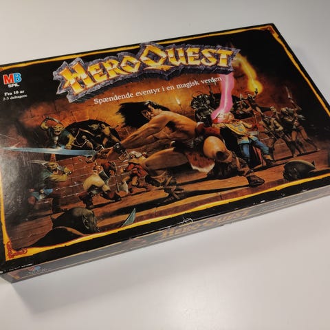 Det originale Heroquest, umalede, på dansk, 100 procent komplet og uden knækkede dele. Det er kun stearinlysene oven på alteret der er brændt ned. Spillet er i virkelig flot stand og kan afhentes i Odense N eller sendes med dao. Hvis du ønsker flere billeder af stand er du velkommen til at skrive, kan kun oploade 8 herinde.