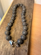 Halssmykke af lava perler lås sterling med 14K guld og diamant. Perler Ø-18mm L-44cm fragt 45kr