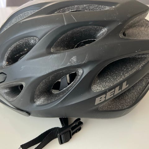 Let og sikker hjelm fra Bell med 2 justeringer - både i nakke til justering ift hoved størrelse og rem under hagen til justering af pasform. Ingen skrammer eller skader og står generelt som ny