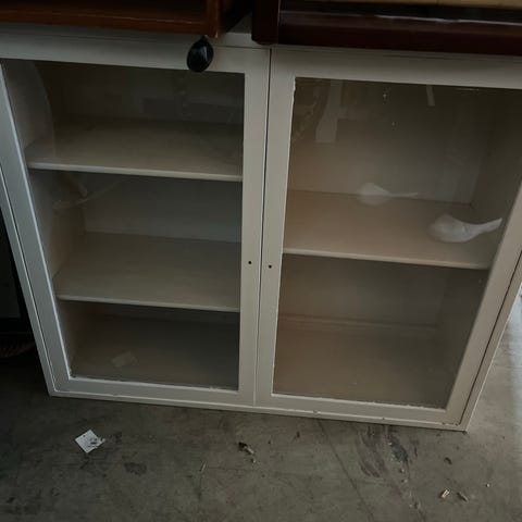 Vitrinen er afsyret, rå træ.