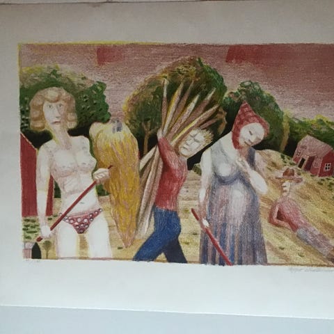 Træramme med patina følger med. Str på billede 18 x 22 cm. Ramme 33 x 44 cm
