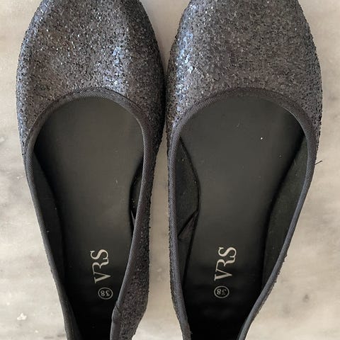 Mørk blå ruskind ballerina.